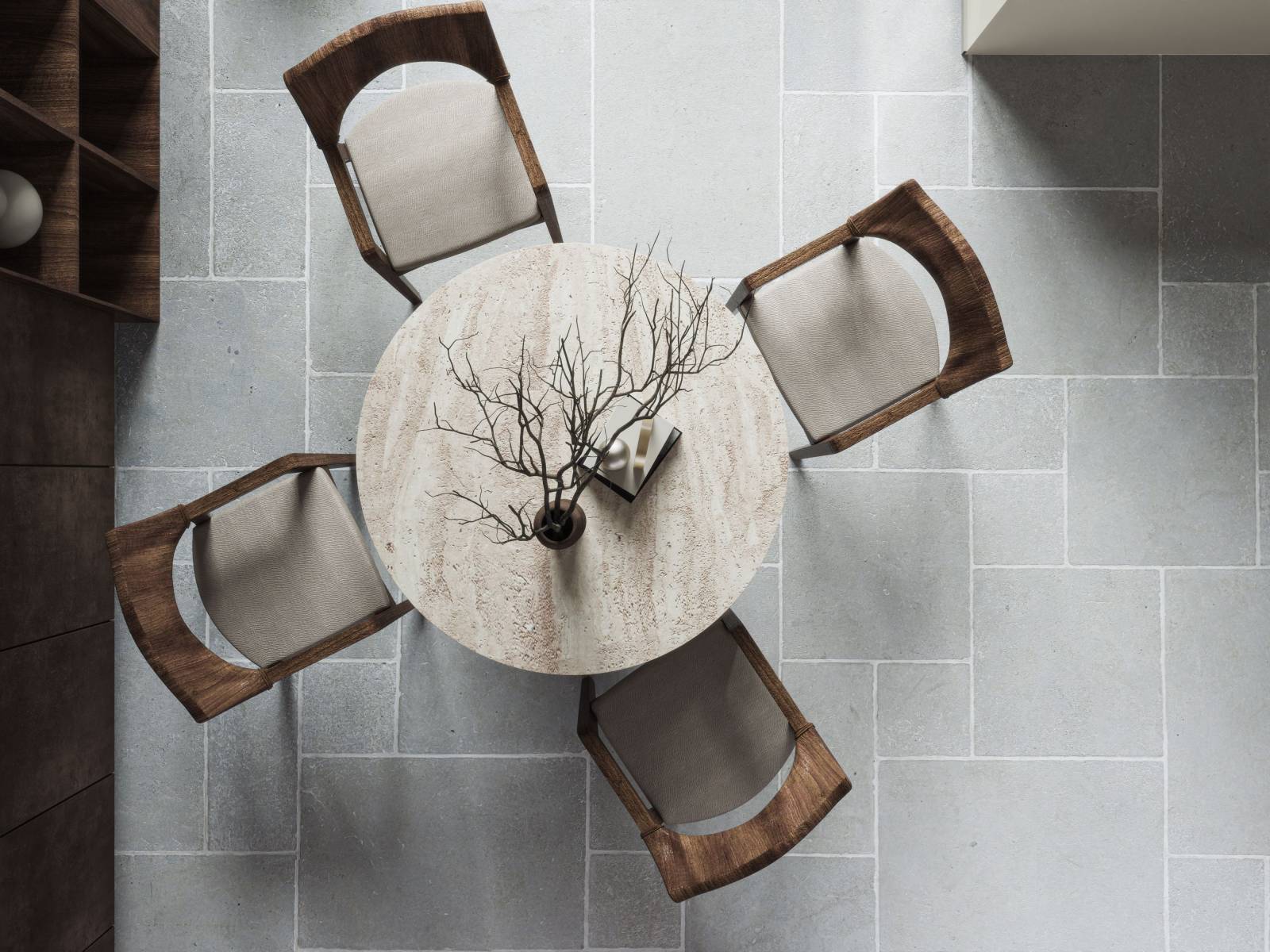La dalle Avallon grise, en calcaire marocain finition Ussé et format opus romain, apporte charme rustique et élégance aux sols intérieurs. Légère, durable et authentique, elle crée une ambiance intemporelle inspirée des traditions architecturales anciennes.